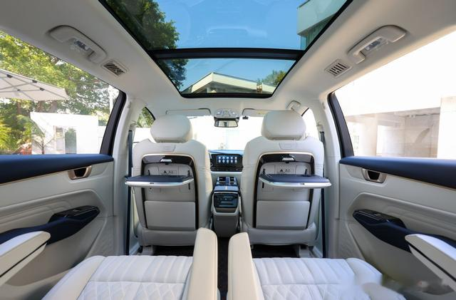 尺寸方面,新车的车身长度是4875mm,轴距是2800mm,尺寸和燃油版车型相同,因此具体车内乘坐空间我们也可以参考燃油版车型,在6座布局下车内空间也比较宽敞。车内的第二排设计有磁浮式滑轨,既支持前后560mm滑动,也支持左右160mm滑动。这样一来,在带家里小孩出门的时候,家长就可以将原本独立的第二排座椅靠拢合并,方便家长照顾小孩。