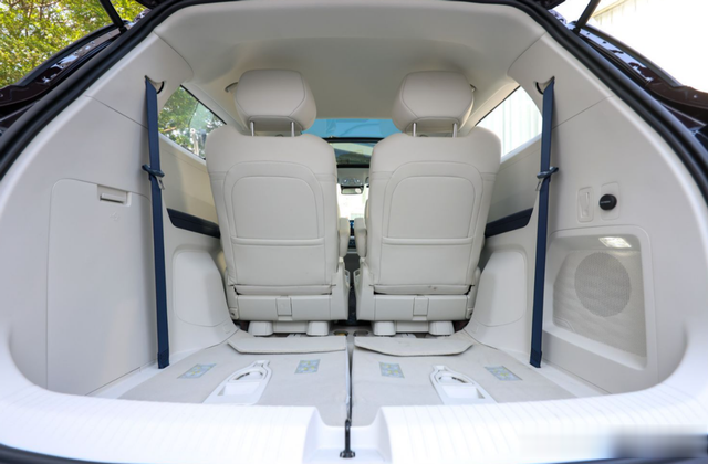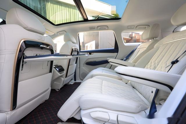 车内的第二排座椅还自带腿托,并且第一排座椅和第二排座椅能180°纯平放倒,前两排座椅能拼接成为两张单人床,在旅行中如果觉得累了,就能在车内小憩、缓解疲劳。而车内的第三排座椅也不普通,而是类似本田奥德赛第三排的“魔术座椅”,在座椅放倒之后能直接隐藏在后排的地台下面,并且支持独立放倒。这样一来,车主就可以根据出行时的需求调节车内的座椅布局,能在4座-6座之中随意切换。假如要搬运大件物品,就可以将第三排座椅放倒,充分利用最大容积1514L的后备厢。