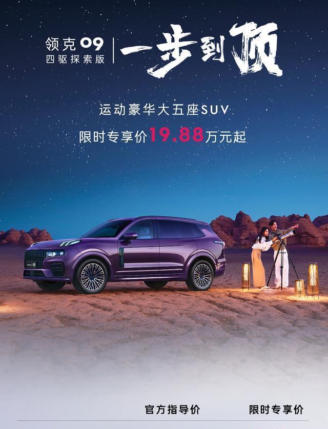 在30万级别的中大型SUV市场中,消费者的选择往往陷入两难:传统燃油车型虽可靠,却在内饰与智能化上略显滞后;而新能源车型虽然配置前卫,却难以摆脱续航焦虑。正因如此,2026款领克09四驱探索版的上市,似乎为这一细分市场带来了新的可能。10月23日,这款融合沃尔沃技术基因与新时代智能体验的车型正式推出泸深配,以19.88万元的限时起售价,重新定义了“燃油车也能拥有新势力体验”的产品逻辑。