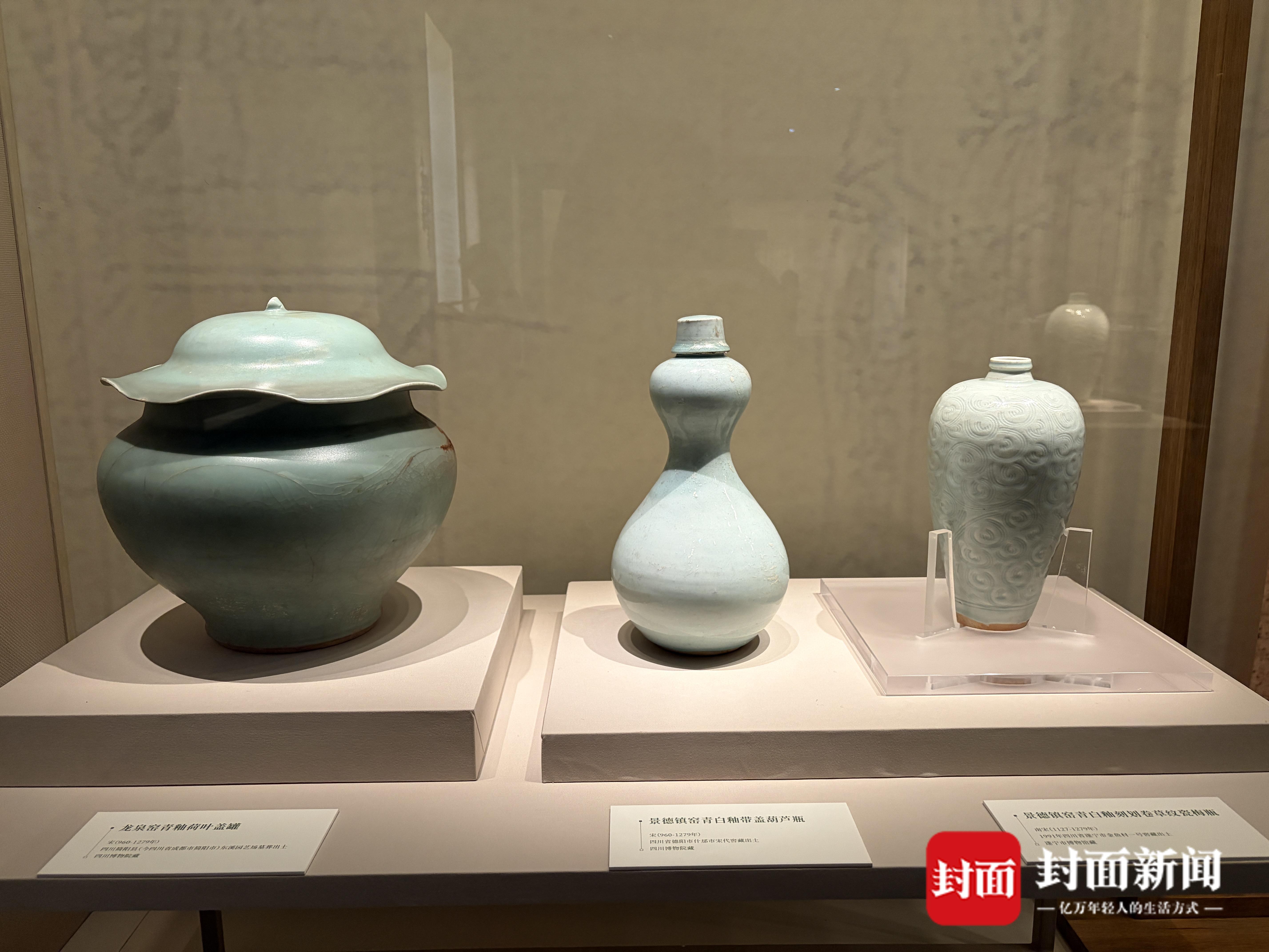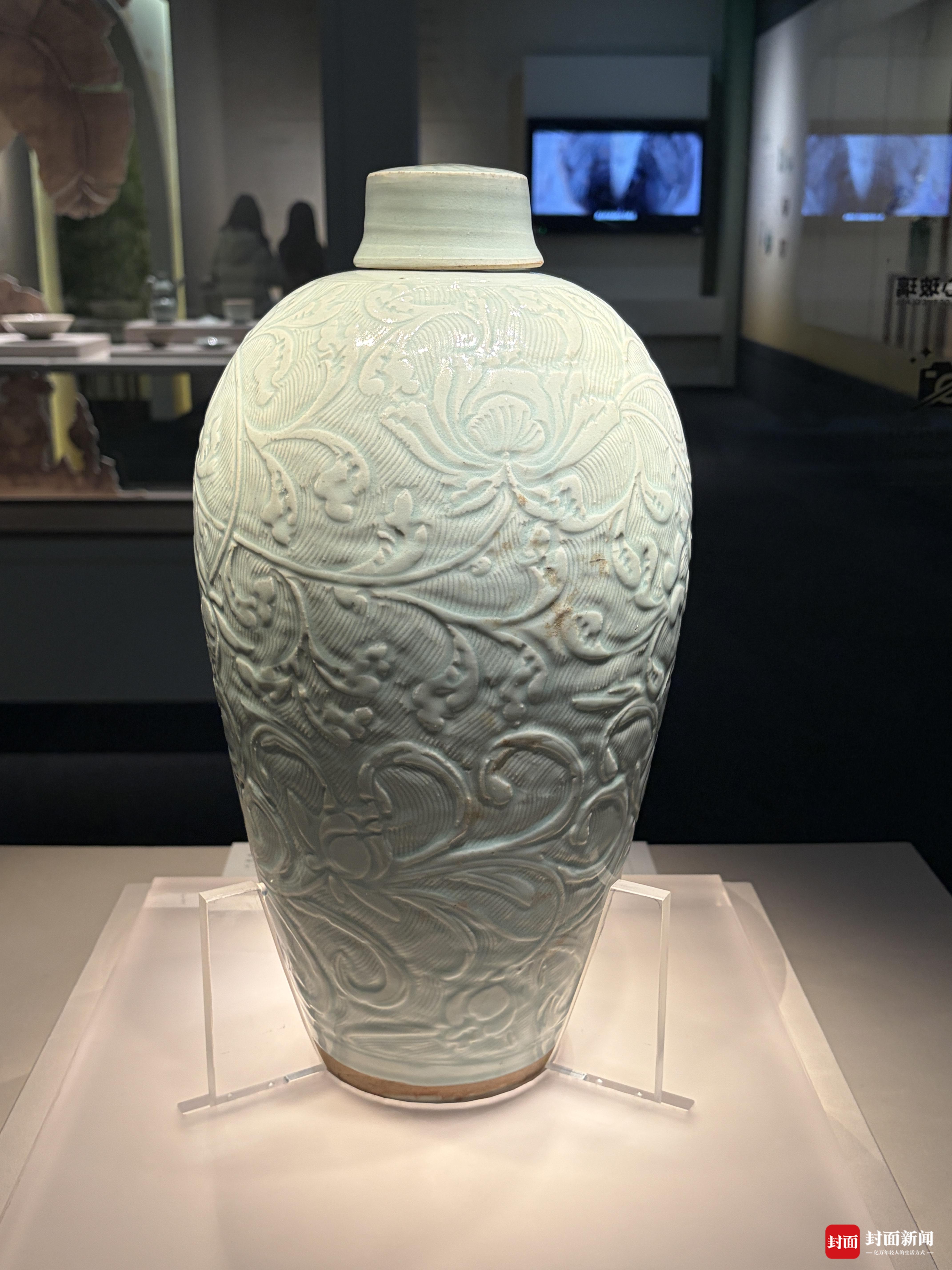 展览中亮相的景德镇窑青白釉缠枝花卉纹带盖瓷梅瓶