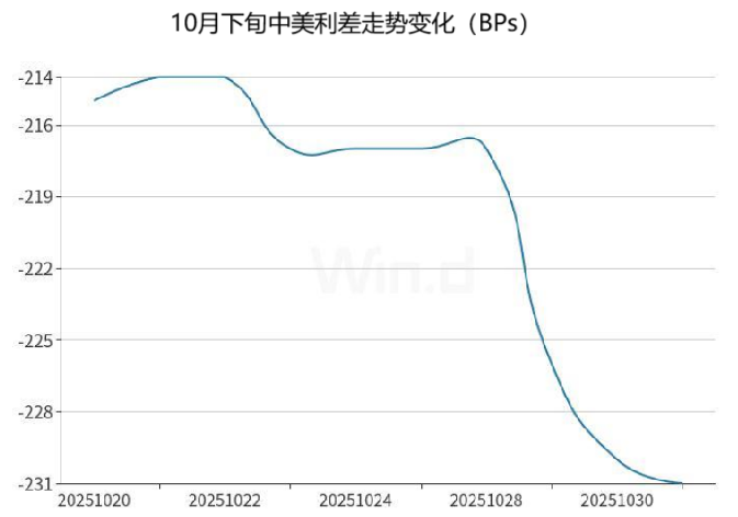 另从大国货币政策错位影响来看,截至10月31日,中美10年期国债利差已扩大至228.87个基点,较前一周再度扩大13.88个基点。“中美利差的变化也将成为影响全球资本流动的重要变量。”前述交易员还提及,在全球经济与政策周期分化的背景下,市场参与者需要适应更高水平的波动性和不确定性,在风险与机遇并存的环境中谨慎前行。